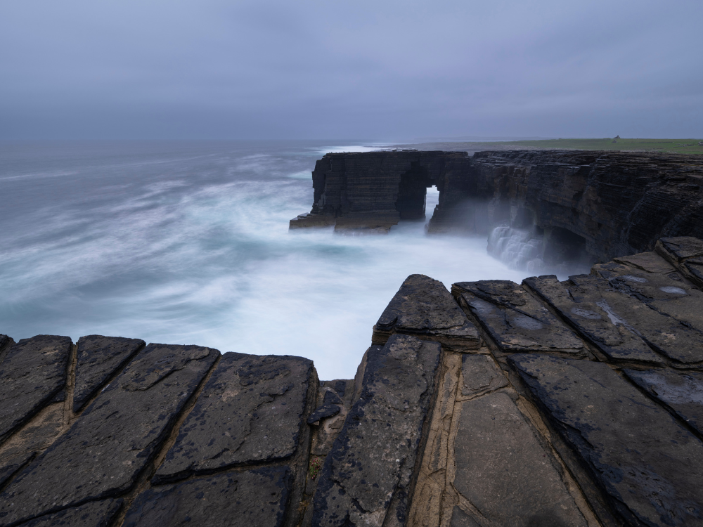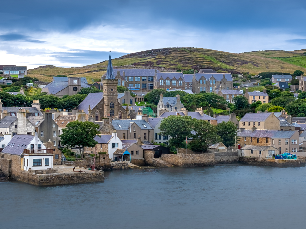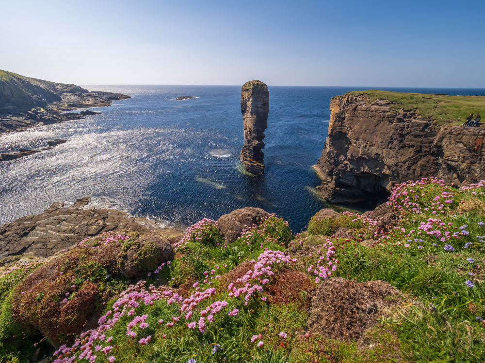 Po południu krótki postój w Stromness – spacer po historycznym porcie, czas na kawę i zakupy lokalnych produktów. Dzień kończy się wizytą na Yesnaby Cliffs, jednym z najbardziej widowiskowych odcinków wybrzeża Orkadów, gdzie potężne fale Atlantyku rozbijają się o bazaltowe formacje skalne.