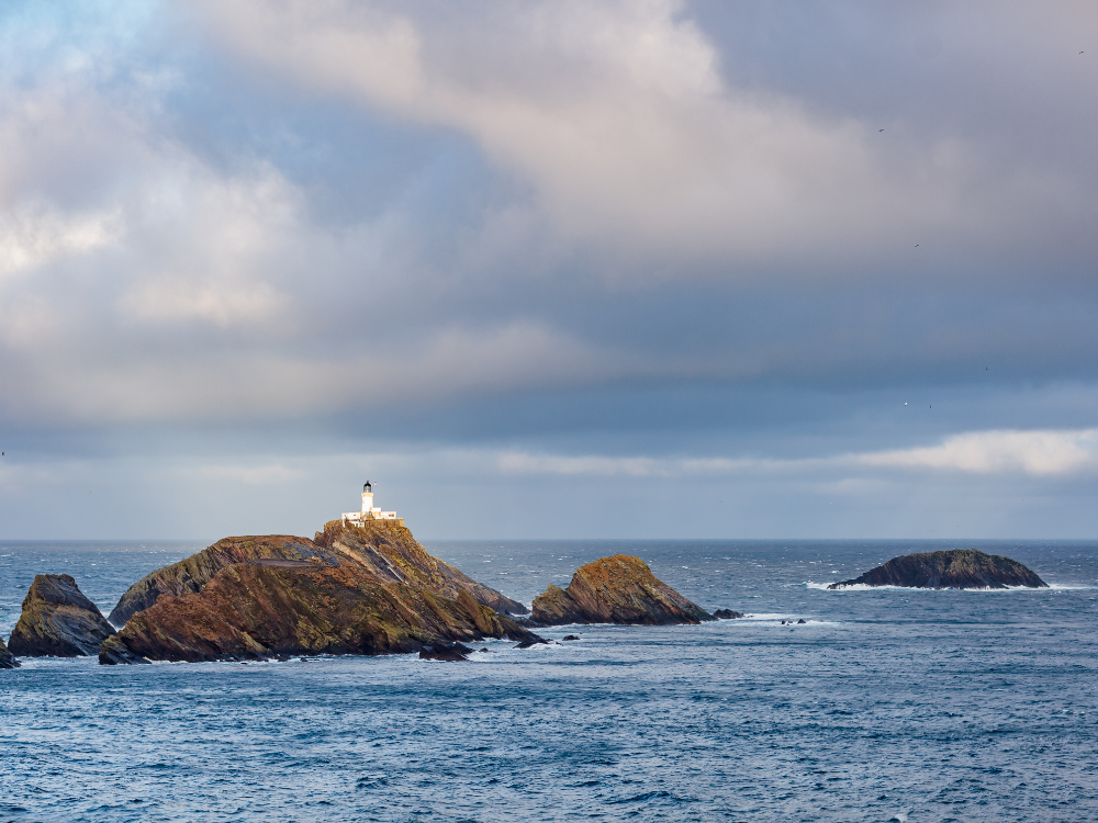 Poranek rozpoczynamy od wizyty na Sumburgh Head, najbardziej znanym klifowym przylądku południowych Szetlandów. Spacer w rejonie latarni morskiej pozwala podziwiać spektakularne widoki na Atlantyk oraz – w sezonie letnim – obserwować kolonie ptaków morskich, w tym maskonury. To jedno z najlepszych miejsc widokowych archipelagu.