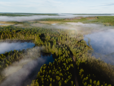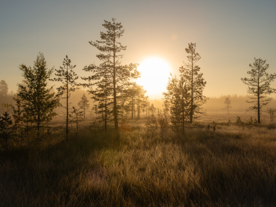Poranny trekking wokół jeziora Sarkiselkä – spacer leśnymi ścieżkami wśród typowego krajobrazu Sawonii: sosnowych borów i spokojnych zatok.