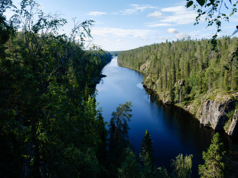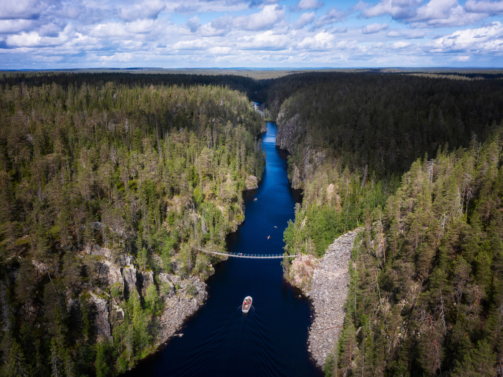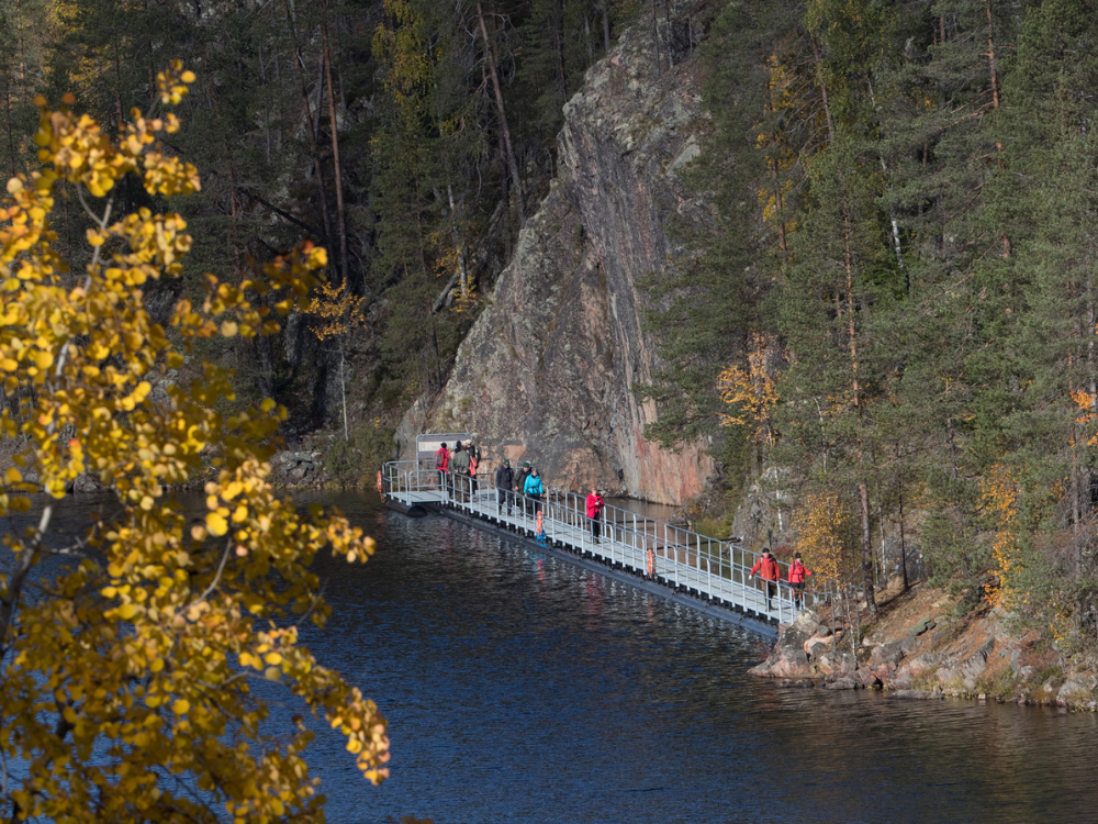 Następnie dalszy przejazd na północ i trekking nad jeziorem Julma-Ölkky, które położone jest w kanionie – jednym z ciekawszych formacji skalnych w Finlandii. Trasa prowadzi wzdłuż stromych ścian skalnych i krystalicznie czystej wody, oferując spektakularne widoki.