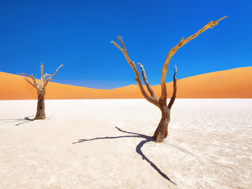 29.04 Późnym rankiem, w komfortowych warunkach, wyruszamy w kierunku jednego z symboli Namibii – Sossusvlei. Po przyjeździe zatrzymujemy się na lunch w eleganckiej Sossusvlei Lodge, skąd rozpościera się widok na pustynny krajobraz. Popołudnie poświęcamy na eksplorację najbardziej ikonicznych miejsc regionu. Odwiedzamy Sossusvlei i Deadvlei – surrealistyczną scenerię kontrastujących kolorów i kształtów – oraz kanion Sesriem. Część trasy pokonujemy pieszo, w naszym tempie. Przed zachodem słońca opuszczamy park, wracając na kemping położony tuż przy jego granicy. Wieczór kończymy kolacją i noclegiem pod rozgwieżdżonym, pustynnym niebem.