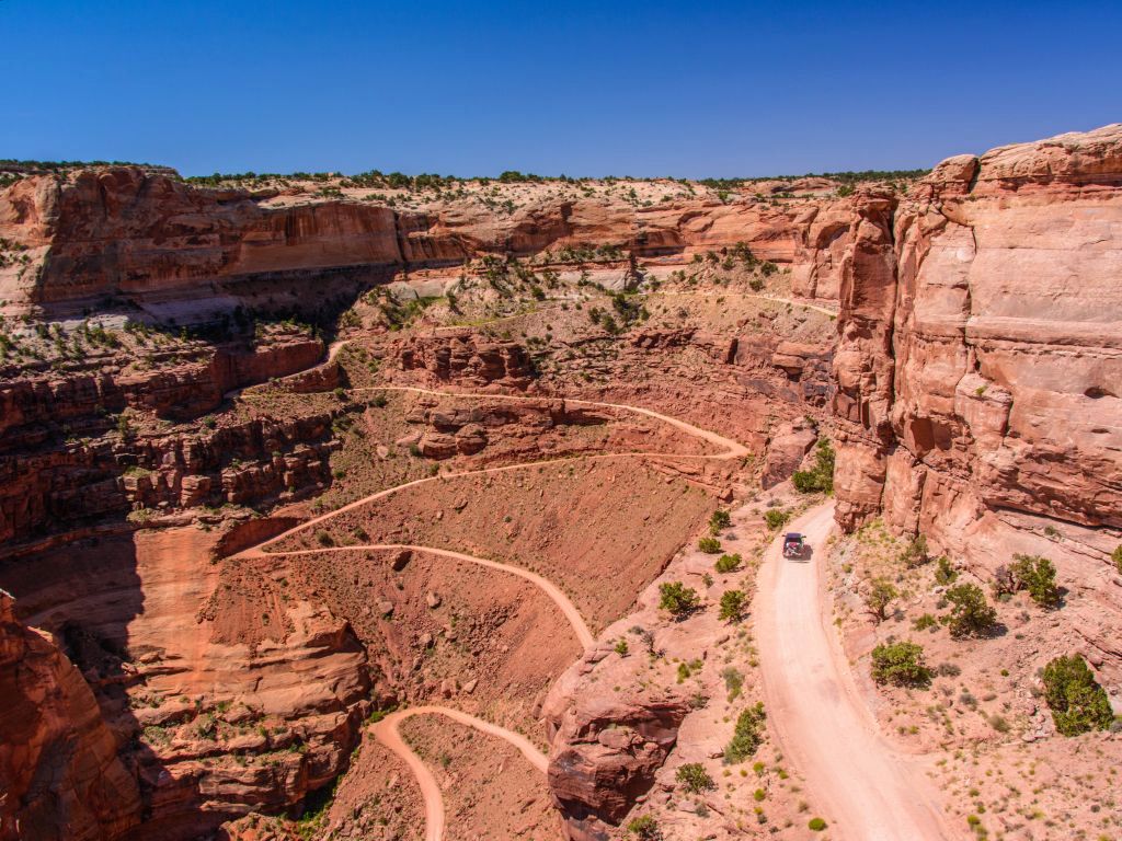 Wliczone atrakcje: Zwiedzanie dolnego Kanionu Antylopy, Doliny Monumentów oraz Parku Stanowego Goosenecks.Nadszedł czas na Moab i nieco inny rodzaj atrakcji. Miasto słynie z pięknych krajobrazów i urozmaiconych szlaków przeprawowych, które pokonać można samochodem terenowym. W tym celu wypożyczymy zmodyfikowane Jeepy Wranglery, dzięki którym będziemy mogli zwiedzić okolicę Parku Narodowego Canyonlands w dość nietuzinkowy sposób. Wynajęte pojazdy (3 lub 4szt.) będziemy mogli prowadzić samodzielnie, zmieniając się co jakiś czas za kierownicą. Wokół Moab jest kilkadziesiąt różnej trudności szlaków przygotowanych dla samochodów terenowych i na nich spędzimy większą część dnia. Nawierzchnie stanowią w większości luźne i lite skały piaskowca o ciemnym, ceglanym kolorze. Błoto jest tam rzadkością, dzięki czemu spektakularne widokowo trasy są dość łatwe w przeprawie.