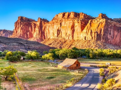 Opcjonalne atrakcje: Lot widokowy, przejazd ekstremalnymi trasami 4x4 z instruktorem lub samodzielnie.Zanim wyruszymy na północ, do Parku Narodowego Yellowstone, poświęcimy jeden dzień na zwiedzanie Capitol Reef National Park. Jego obszar leży nieco na uboczu, dzięki czemu nie znajdziemy to wielu turystów. Nazwa wzięła się w głównej mierze od potężnych białych kopuł wieńczących skalne szczyty, które przywodzą na myśl kopułę waszyngtońskiego Kapitolu. Park jest swoistego rodzaju oazą kolorowych, piaskowych klifów i imponujących kopuł. Rdzenni mieszkańcy nazywali ten obszar „krainą śpiącej tęczy” ze względu na piękne kontrasty: wielobarwny piaskowiec otoczony zielenią brzegów rzek oraz suchą roślinnością pustynną – te kolorowe widoki położone są pod błękitnym niebem. Jest tu zdecydowanie więcej zieleni niż w poprzedzających dniach, co bardzo ubarwi nam przemierzane szlaki.